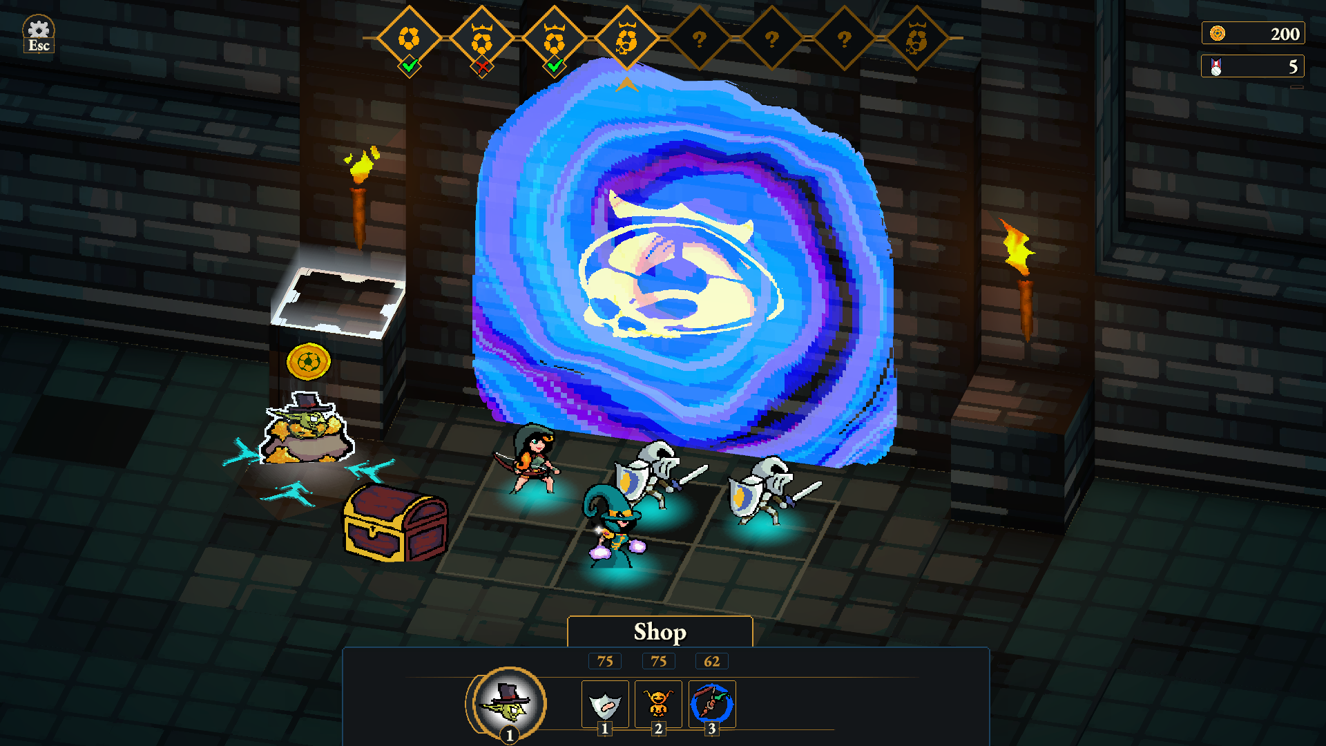 - Collect team members on wins and sacrifice team members on losses to keep going